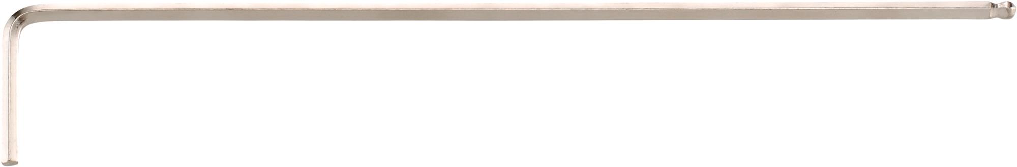 Lange inbussleutel kogelkop, 7/64". Voor binnenzeskantbouten, met kogelkop aan de lange kant, zwenkhoek tot 25 graden naar iedere kant, Chroom-Vanadium, vernikkeld.