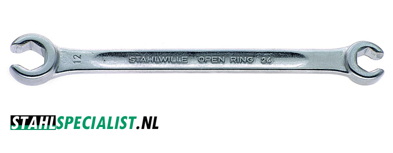 Open ringsleutel, licht gebogen, 5/8x3/4 mm. DIN 3118/ISO 3318 (metrische maten), Chrome-Alloy-Steel, verchroomd.