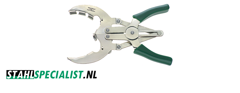 Zuigerveeromlegtang. Voor het monteren en demonteren van zuigerveren 80-120 mm, glansvernikkeld.
